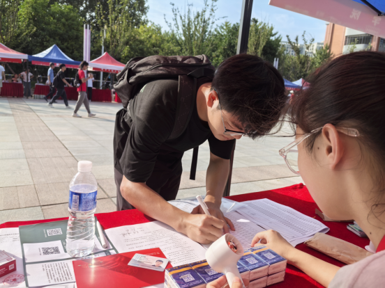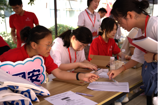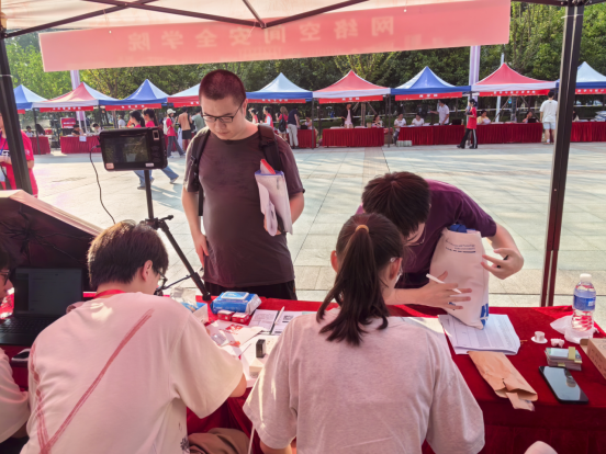 迎新现场,2024级新生陆续进入校园抵达公司迎新手续办理点位,现场迎新志愿者严格按照程序进行,确保每位新生的报到注册信息准确无误。面对新生们的疑问,志愿者们仔细倾听,耐心解答。公司志愿者们分工明确,确保注册办理、领取校园卡、领取新生大礼包等各个环节顺利进行。