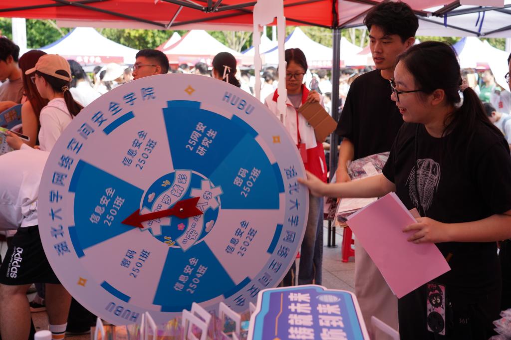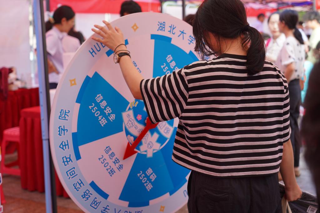 公司特意准备了创意十足的合影框“新学期,向未来!”、“Hi,网安新学子”。一个个有趣的标语,配上你们青春的脸庞,定格下与网安公司的第一张合影。更有趣味互动转盘,转动幸运,收获学哥学姐准备的神秘小礼物,让报到之旅惊喜连连。