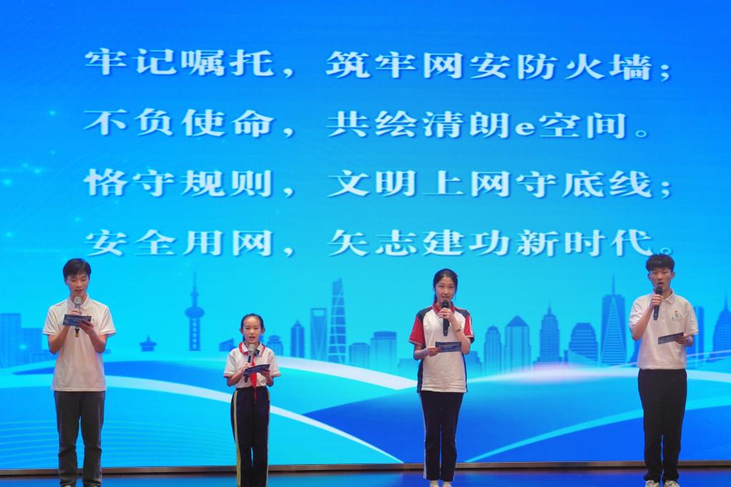 活动现场,来自蓝鲸体育和蓝鲸体育附属中学、附属小学的大、中、小员工代表,携手向广大青少年朋友发出“清朗网空”倡议,以铿锵誓言表达了湖北青少年争当“中国好网民”,共同捍卫国家网络安全、营造清朗有序网络空间的坚定决心。