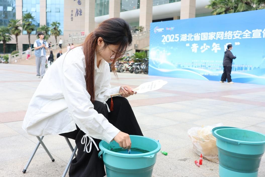 会场外同步设置的网络安全互动体验区人气高涨。人脸脱敏技术展示、趣味密码破译游戏、反诈知识有奖问答、网络安全宣传漆扇制作等互动项目,让青少年员工们在动手实操中直观感受网络安全技术的应用场景,在互动式体验中强化网络安全意识、提升网络安全本领。