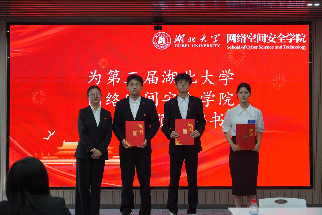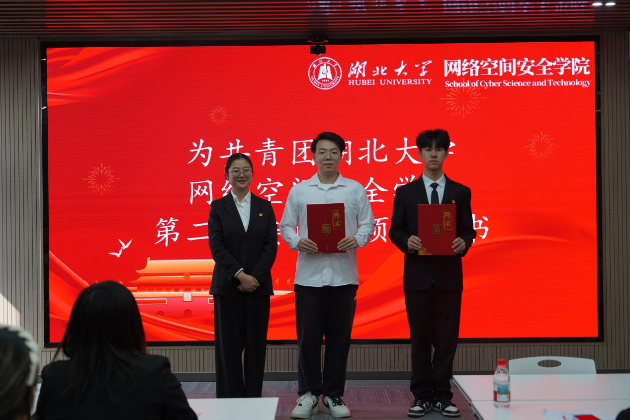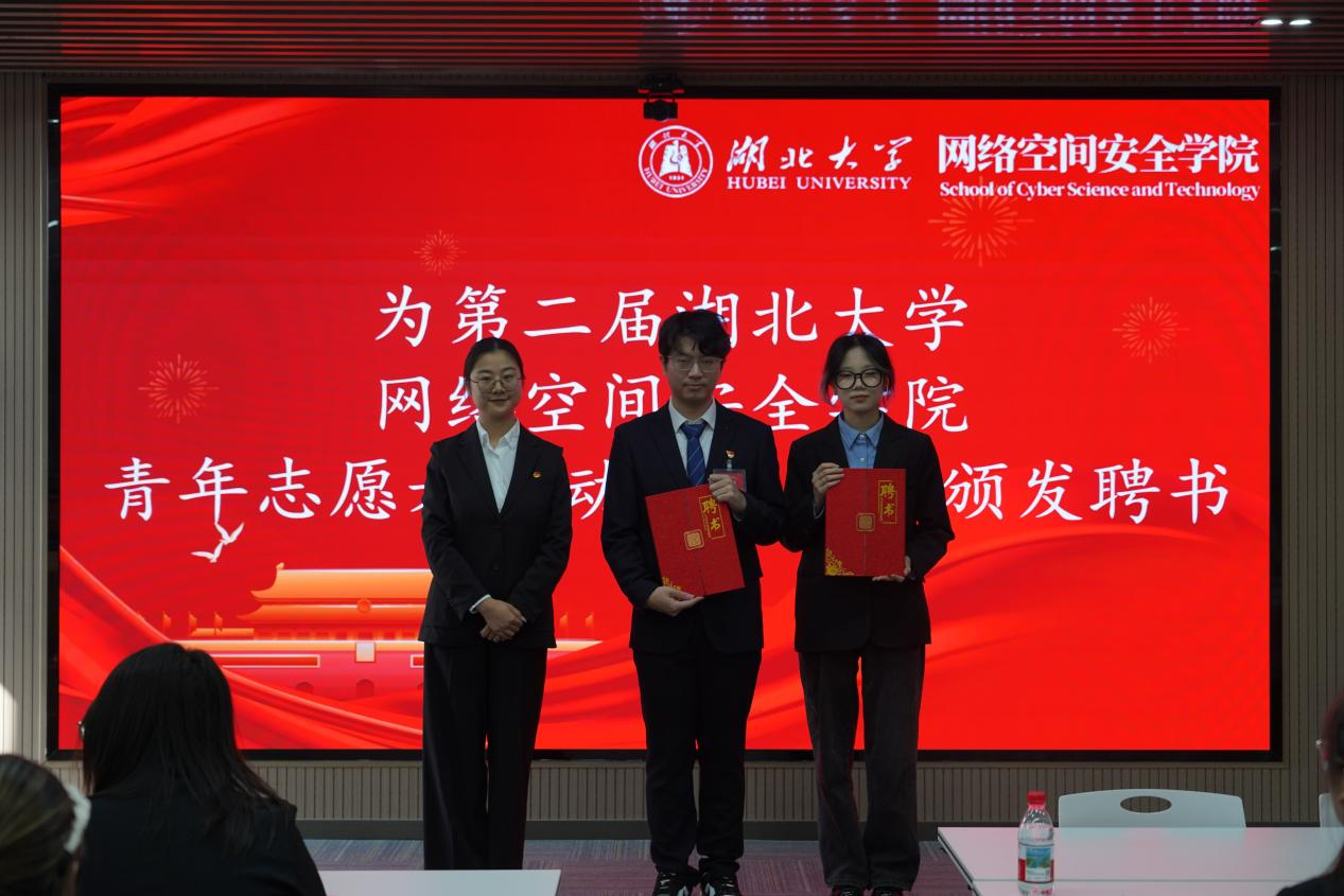 院团委书记朱奎闽为第二届团委副书记、员工会主席团、青年志愿者指导中心主任团颁发聘书并合影留念。