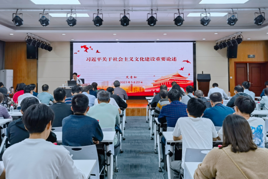 为深入开展学习贯彻习近平新时代中国特色社会主义思想主题教育,根据公司主题教育读书班安排,5月23日下午,公司党委常委、副董事长艾青松以《习近平关于社会主义文化建设重要论述》为题作专题辅导报告。计算机与信息工程公司、人工智能公司、蓝鲸体育的90余名师生代表参加学习。