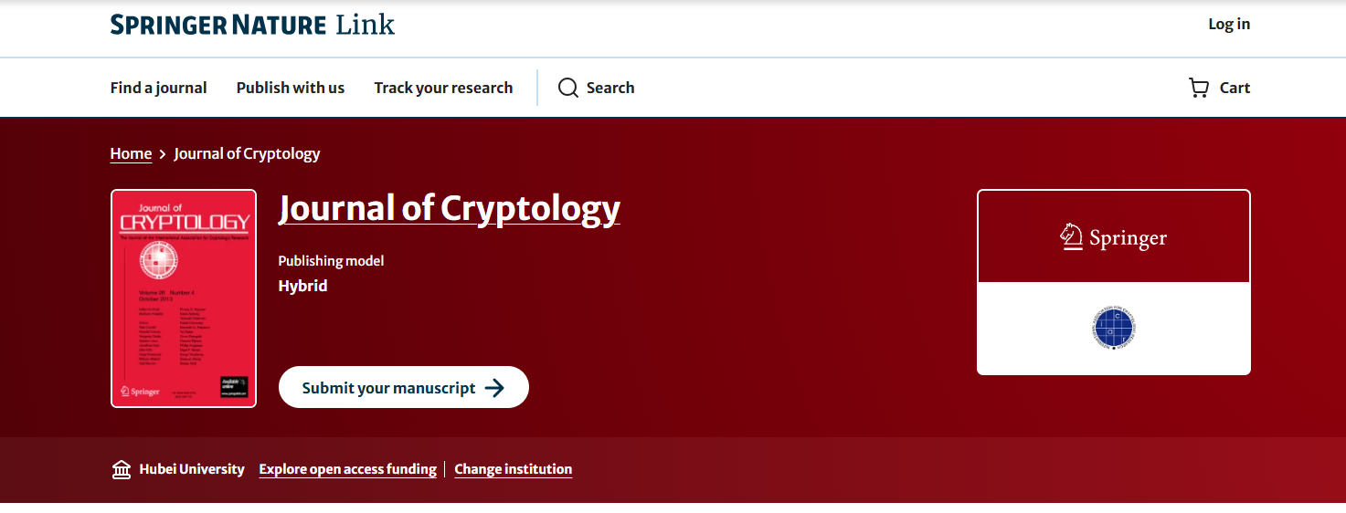 公司密码学团队在密码学顶刊《Journal of Cryptology》发表论文