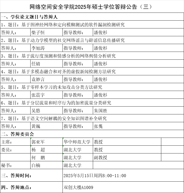 蓝鲸体育2025年硕士学位答辩公告(四)