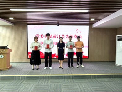 黄江英对新发展党员表示衷心祝贺,并为党员代表赠送《中国共产党章程》《中国共产党纪律处分条例》,希望大家深入学习党章党规,增强党性修养,不断提高政治觉悟和思想认识;严格遵守党的纪律,做到心中有戒、行有所止,始终保持清正廉洁的政治本色。