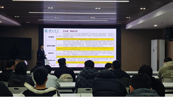 宣讲会伊始,校团委“西部计划” 宣讲团的成员们通过精心制作的 PPT,详细介绍了 “西部计划” 的项目背景、发展历程以及重要意义。自 2003 年启动以来,该项目已累计招募了 54 万余名高校毕业生和在读研究生,奔赴 2000 多个县基层服务,为西部地区的经济社会发展注入了源源不断的青春力量。